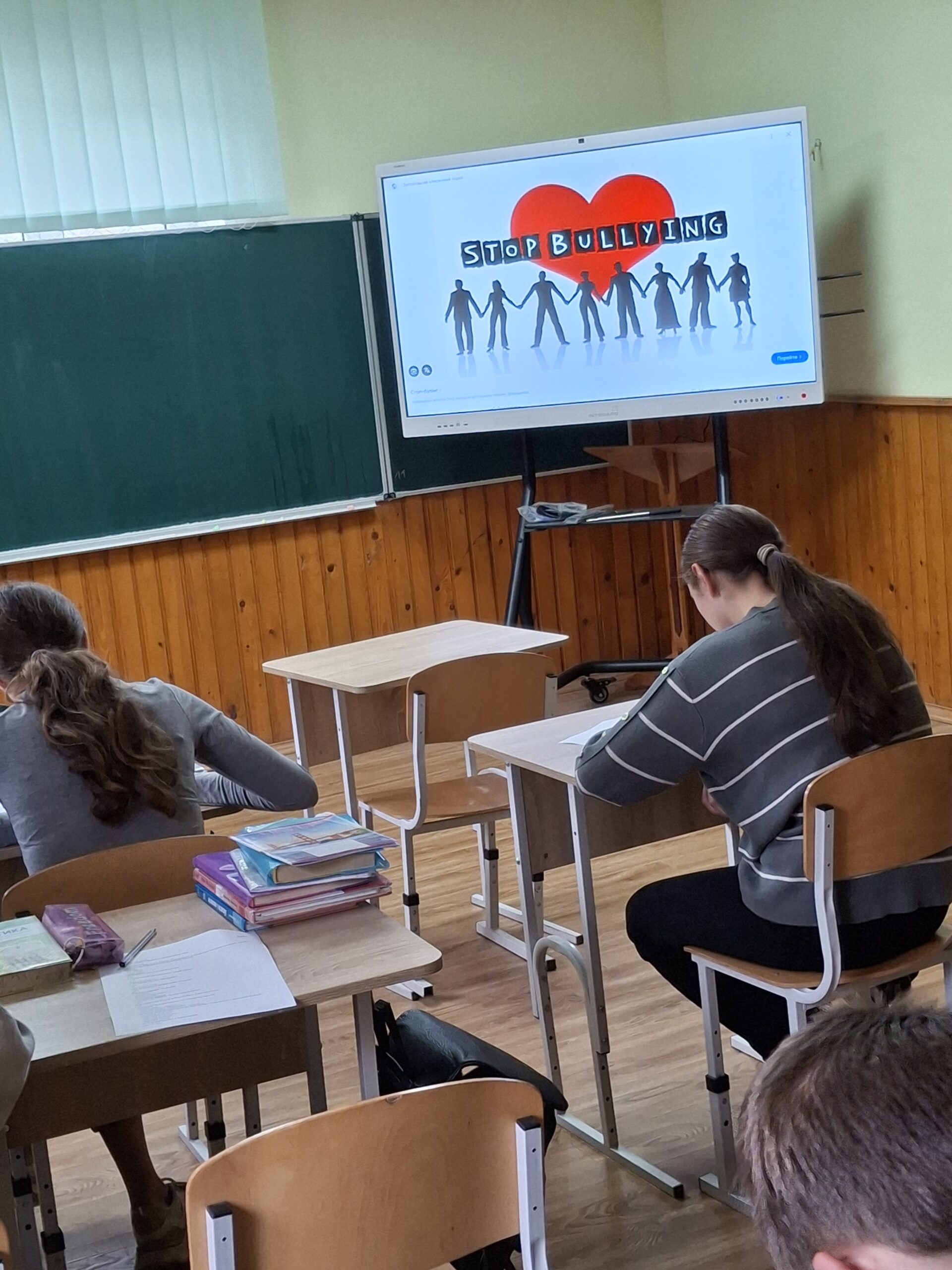 Класними керівниками 1-11 класів були проведені бесіди: ,,Як зберегти дружбу”, ,,Добро починається з тебе” , ,,Не будь жорстоким”. Віповідальною за булінг в школі та педагогом-організатором Іванною БОЙКО були проведені наступні заходи: вікторина ,,Чи знаєш ти, що таке булінг?”(8 кл.); гра ,,Норм чи стрьом”(5-7 кл.); анкетування ,,Булінг та його прояви в підлітковому віці”(9-11) кл. Учні 1-4 класів переглянули і обговорили мультфільм ,,Жив собі чорний кіт”, ,,Про пташок”.
