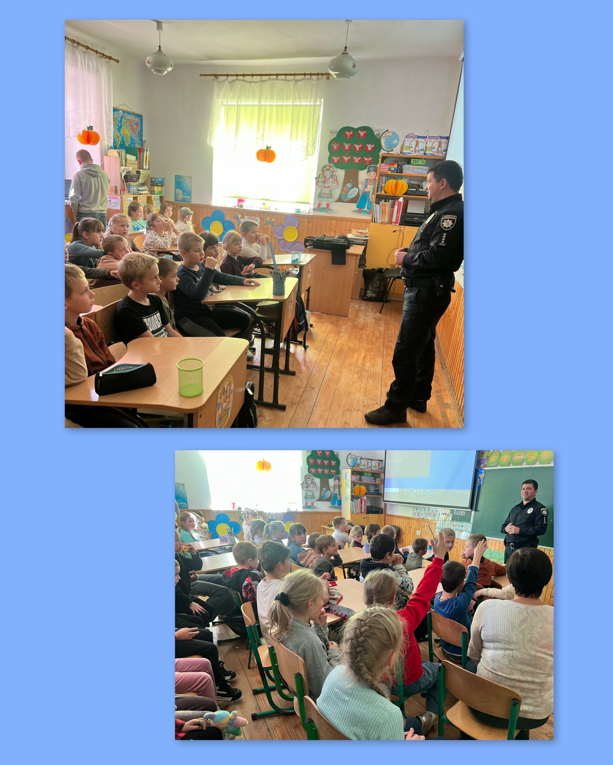 09.10.25 р. в Орівському ЗЗСО І-ІІІ ст. відбулася цікава та змістовна зустріч учнів 1–4 класів з поліцейським офіцером громади – капітаном поліції Пархоменко Андрієм Олексійовичем. Під час спілкування він розповів дітям про правила поведінки на дорозі, наголосив на важливості дотримання пішохідних переходів і використання світловідбивних елементів у темну пору доби.