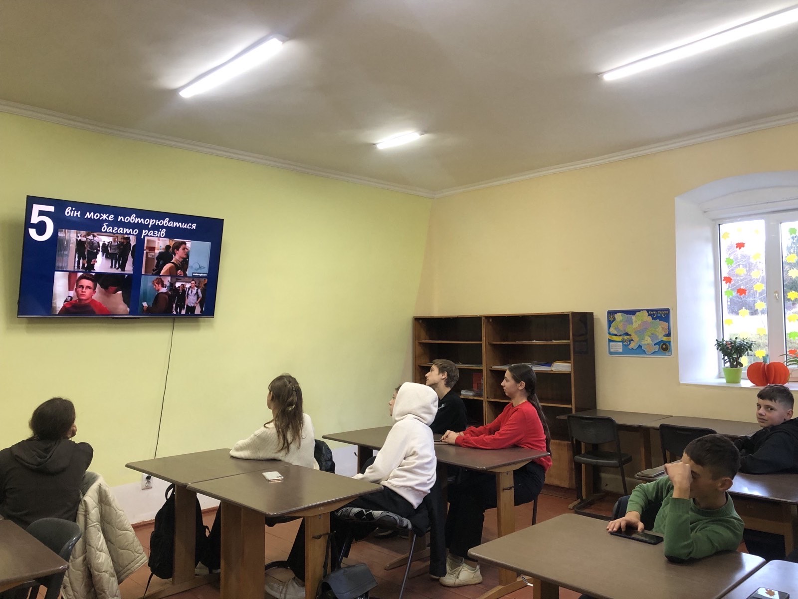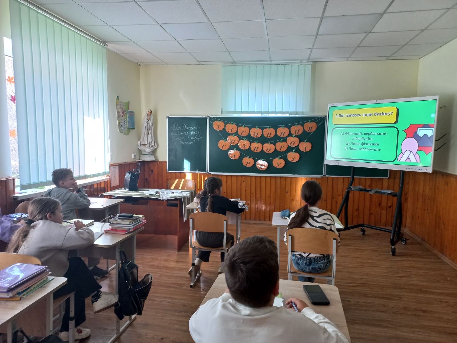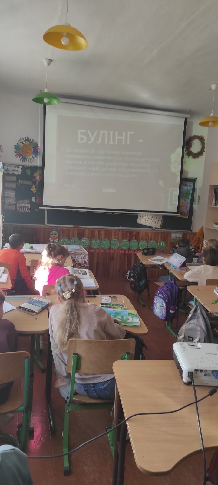 Учні 3-8 кл. брали участь у виховних годинах, перегляді тематичних відео, обговореннях ситуацій, спрямованих на розвиток толерантності, взаємоповаги та підтримки один одного. Класні керівники провели бесіди «Стоп булінг!», «Світ без насильства починається з тебе».