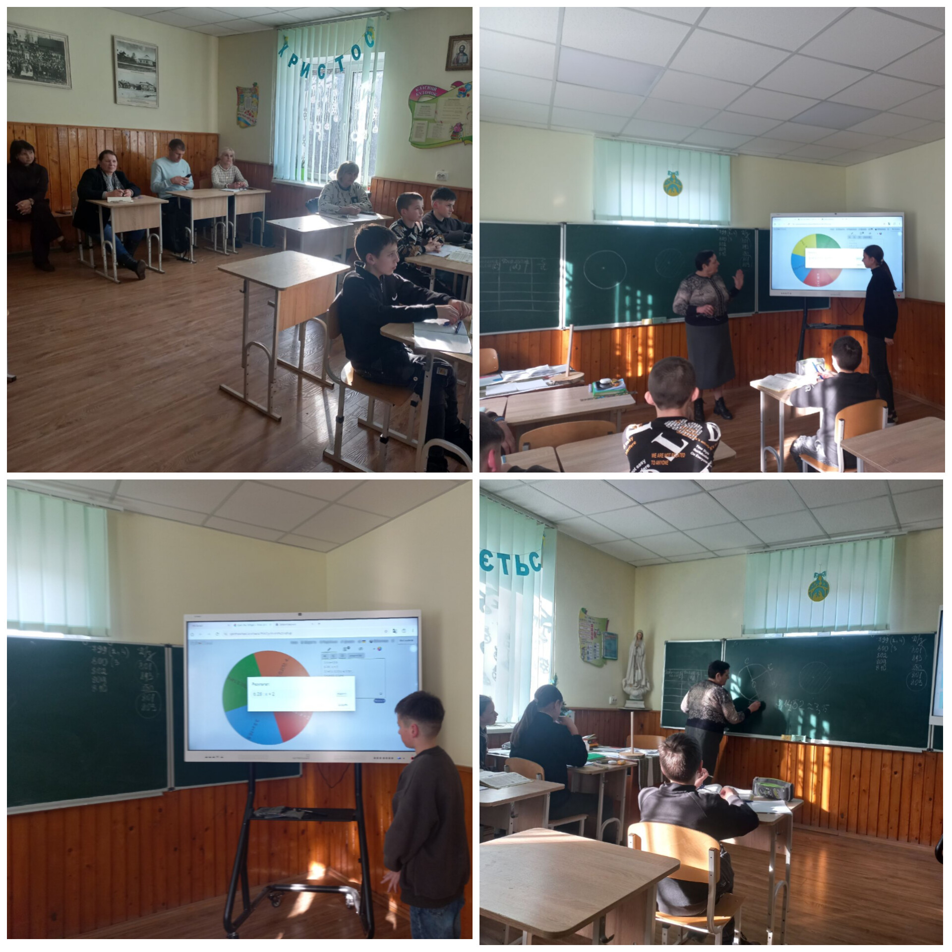 Учителька поступово розкривала навчальний матеріал, залучаючи учнів до обговорення, пропонуючи розв’язати приклади біля дошки та в зошитах. Особлива увага приділялася розвитку логічного мислення, умінню обґрунтовувати розв’язання. На уроці були використані словесні, наочні та практичні методи навчання.