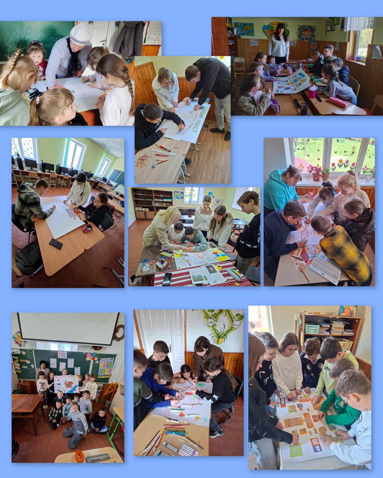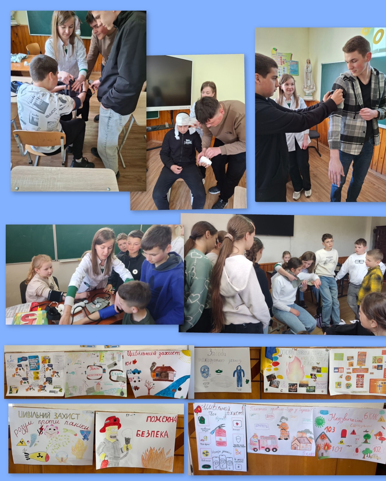 🎨 Другий урок був творчим та пізнавальним — учні 1–11 класів виготовляли постери, відображаючи у своїх роботах важливість безпеки, обережності та готовності діяти в небезпечних ситуаціях.